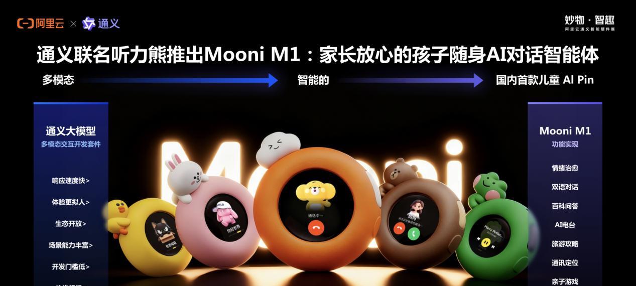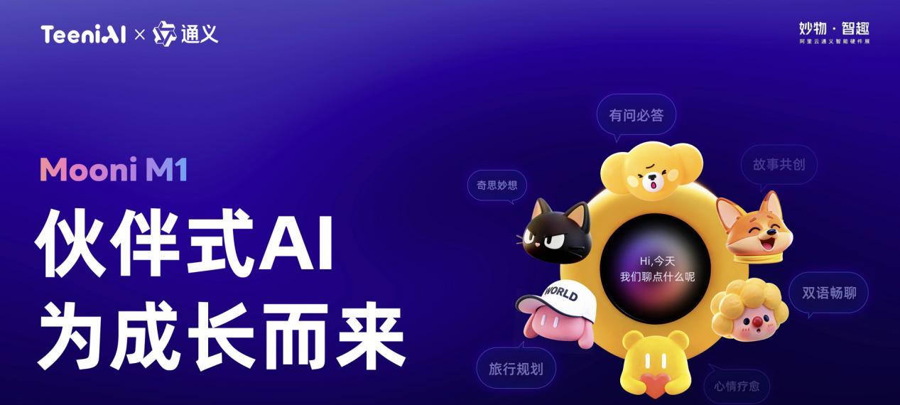 2026 年 1 月 8 日,深圳——在阿里云主办的「2026 妙物·智趣 通义智能硬件展」主论坛上,阿里云智能集团通义大模型业务总经理徐栋宣布,听力熊 Teeni.AI 与阿里云、通义实验室联名的首款面向儿童的 AI 对话智能体 Mooni M1 正式发布。这款造型圆润、兼具科技感的智能设备一经亮相,即刻成为全场焦点,标志着双方在儿童 AI 陪伴与成长领域的战略合作迈入全新阶段,也预示着儿童 AI 正从通用能力延伸,走向更具场景深度与成长洞察的新纪元。
